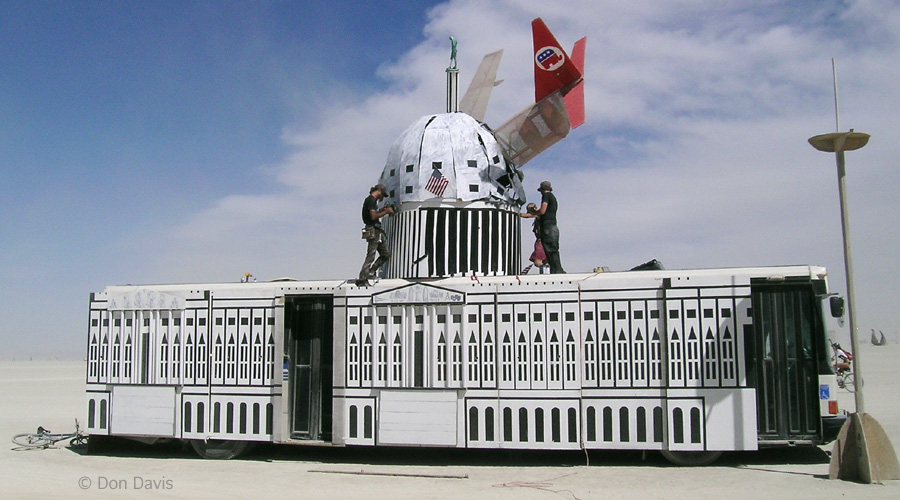 sunburst shaped Center Camp' tent and its surrounding 'business